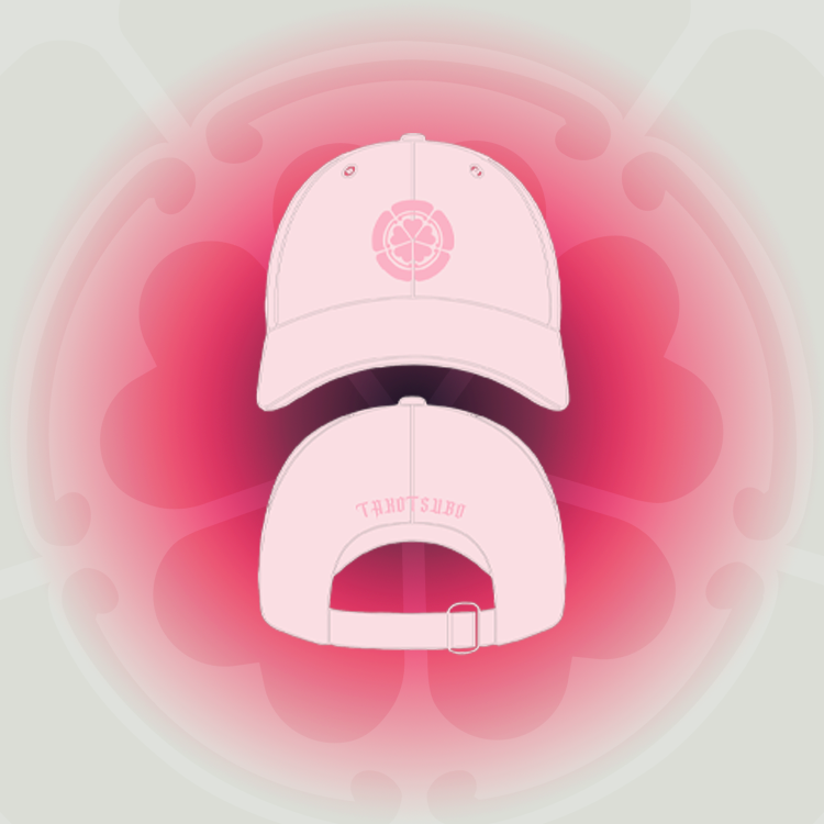 Sur le devant, notre logo brodé s’impose avec caractère. Un clin d’œil aux Kamon – les emblèmes des anciens clans japonais – réinterprété à notre façon. Sur le côté, une fleur de cerisier, brodée elle aussi, rend hommage à la beauté éphémère qui a inspiré toute cette collection. Et sur le derrière, la broderie signature, TAKOTSUBO. Une pièce douce en couleur, mais forte en symbole.